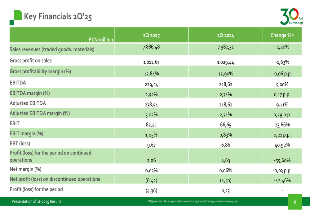 The following chart illustrates Eurocash’s Q2 2025 financial performance: