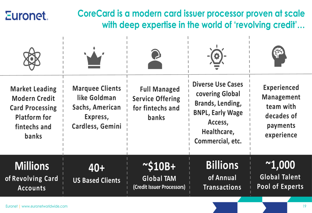 CoreCard’s modern credit card processing platform offers several competitive advantages that Euronet plans to leverage: