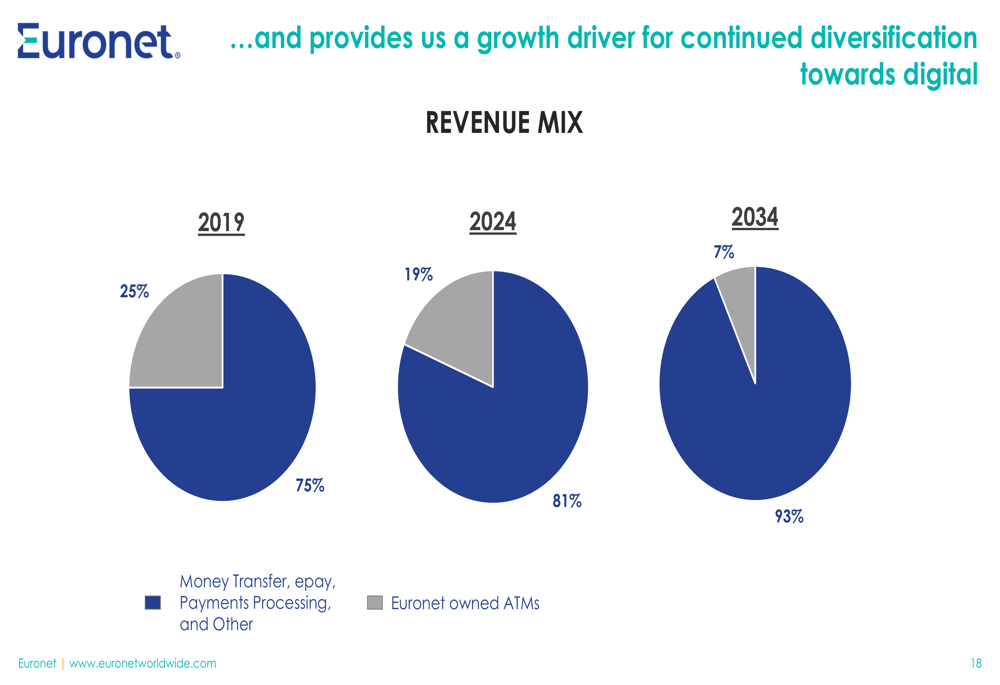 Euronet’s presentation revealed a clear strategic vision for transforming its revenue mix over time, with a continued shift away from ATM-based revenue toward digital services: