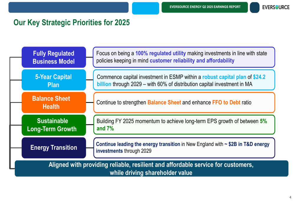 Eversource Energy’s Q2 2025 results demonstrate the company’s ability to deliver steady performance while advancing its strategic priorities. With a clear focus on regulated businesses, substantial capital investments, and constructive regulatory outcomes, the company appears well-positioned to achieve its long-term growth targets.