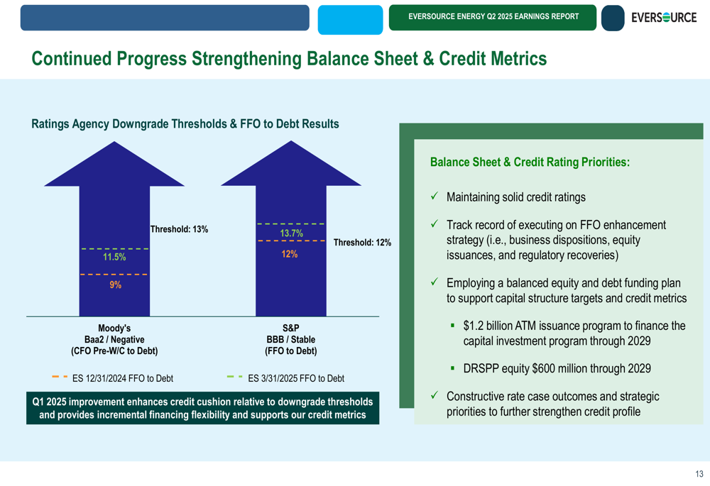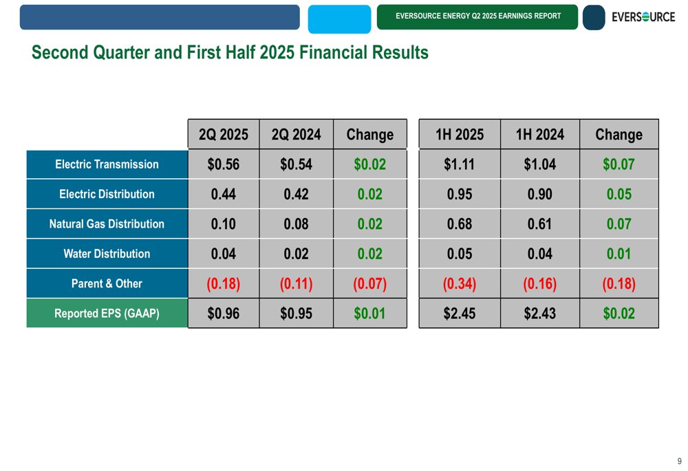 Eversource’s Q2 2025 results showed improvements across all its business segments. The company highlighted its operational success during challenging weather conditions, including top decile reliability during record-breaking heatwaves and efficient power restoration following a significant storm over the Fourth of July weekend.