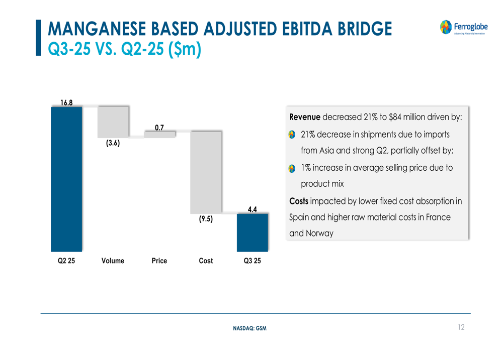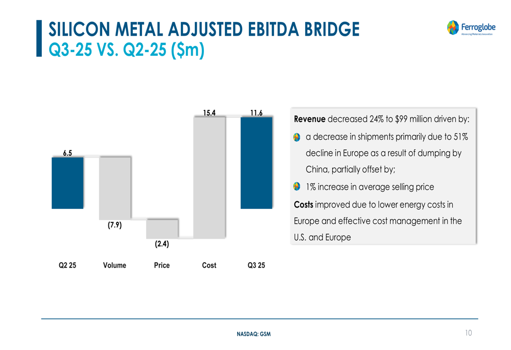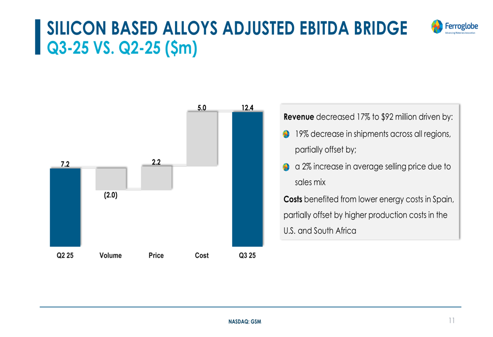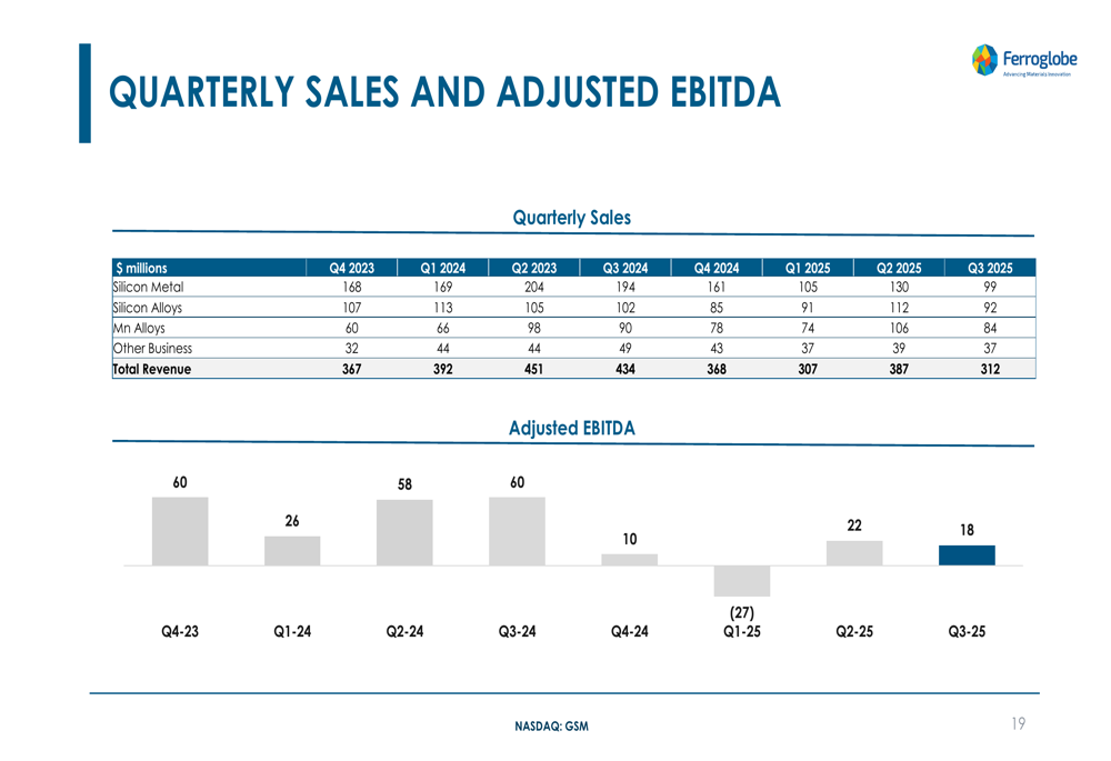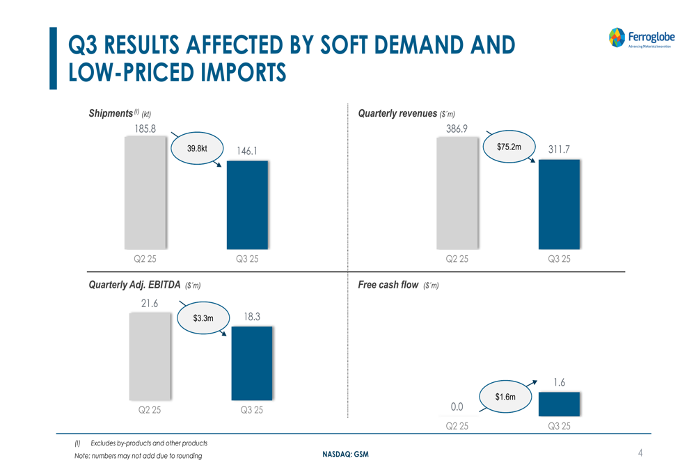 As shown in the following chart of Ferroglobe's Q3 2025 financial performance: