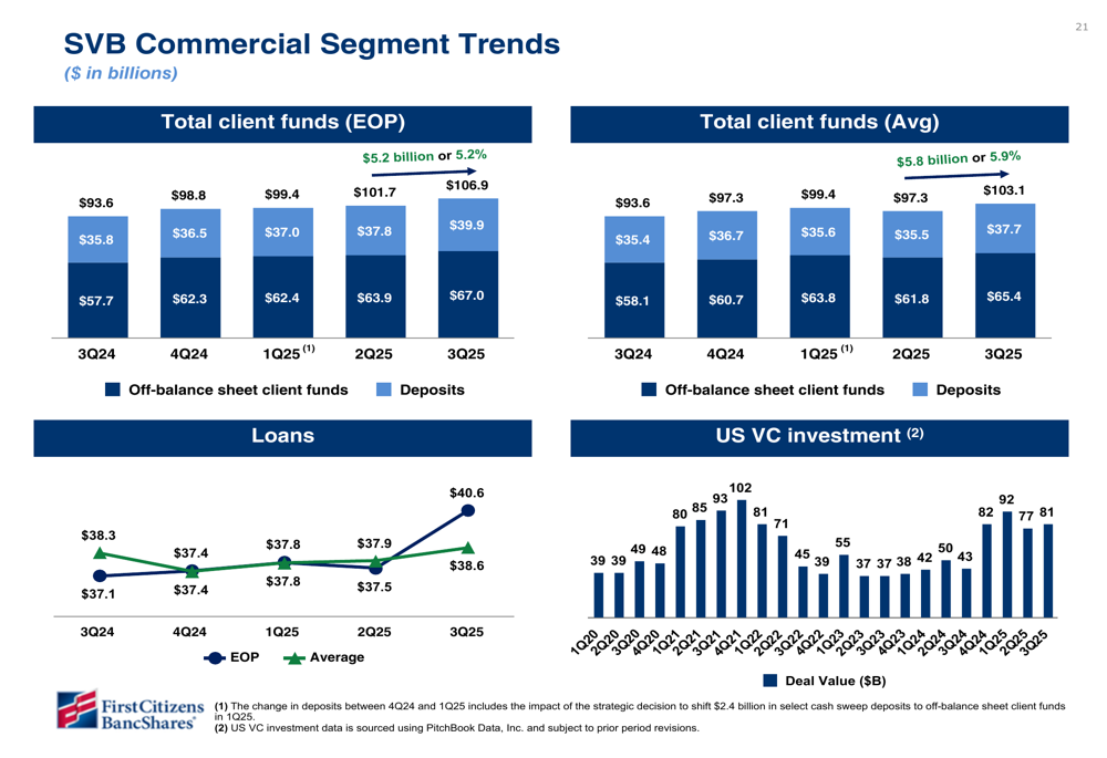 The SVB Commercial segment continued to show strong performance, with total client funds reaching $106.9 billion at the end of the quarter, up from $101.7 billion in the previous quarter. The following chart illustrates the positive trends in this segment: