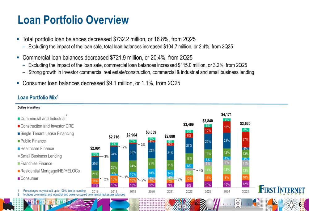 The centerpiece of First Internet’s third quarter was the completion of a major balance sheet optimization initiative through the sale of $836.9 million in single tenant lease financing loans. This transaction resulted in a $37.8 million loss but was presented as a strategic move to improve the company’s financial foundation and focus on higher-yielding lending segments.