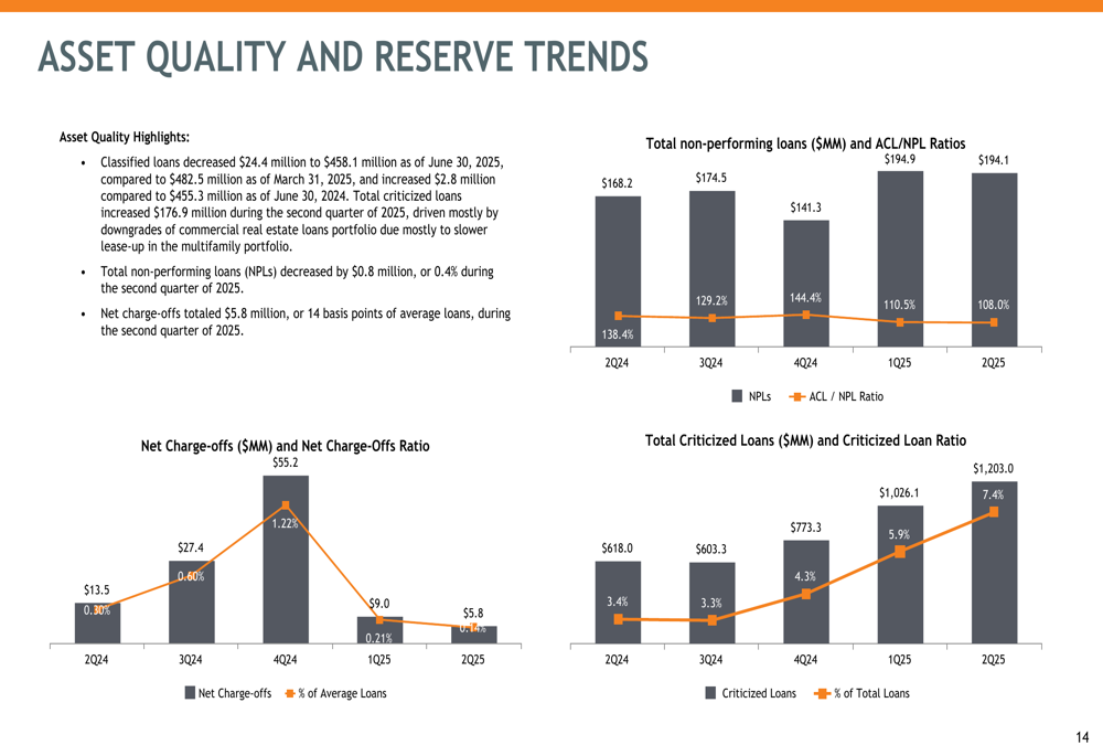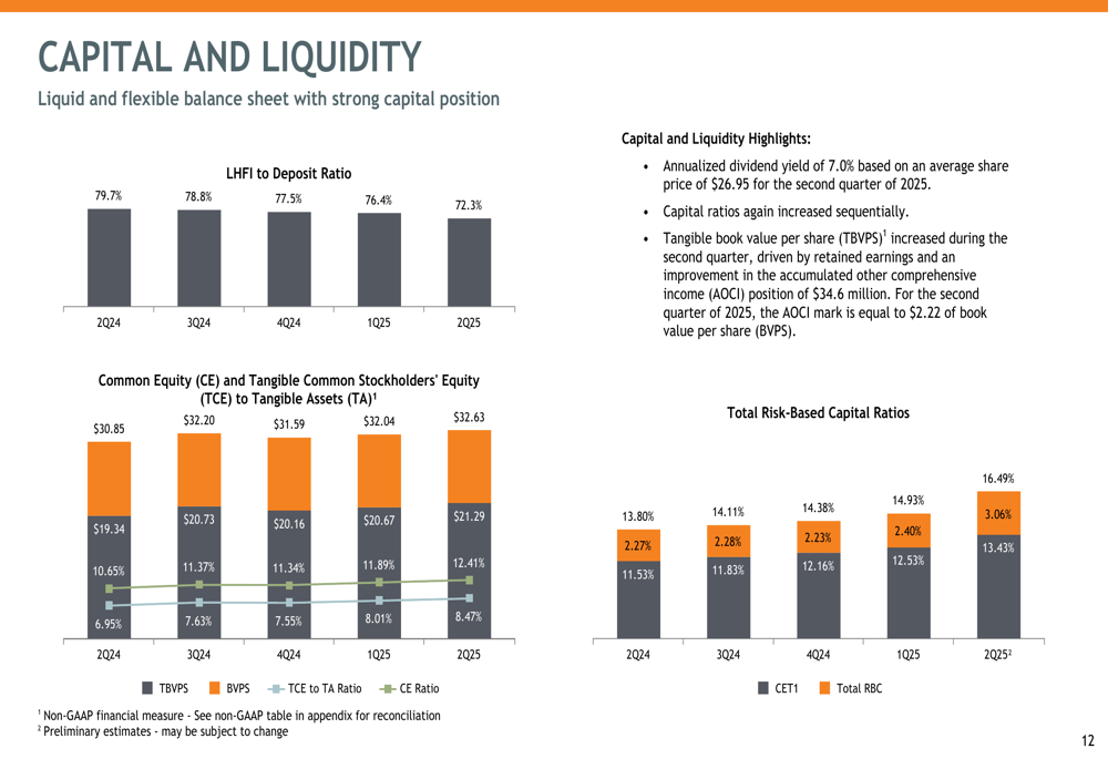 On the deposit side, total deposits decreased by $102.2 million during Q2 2025, while deposit costs declined by 1 basis point from the previous quarter. The bank maintains a strong core deposit base, which supports its low funding costs and contributes to the improved net interest margin.