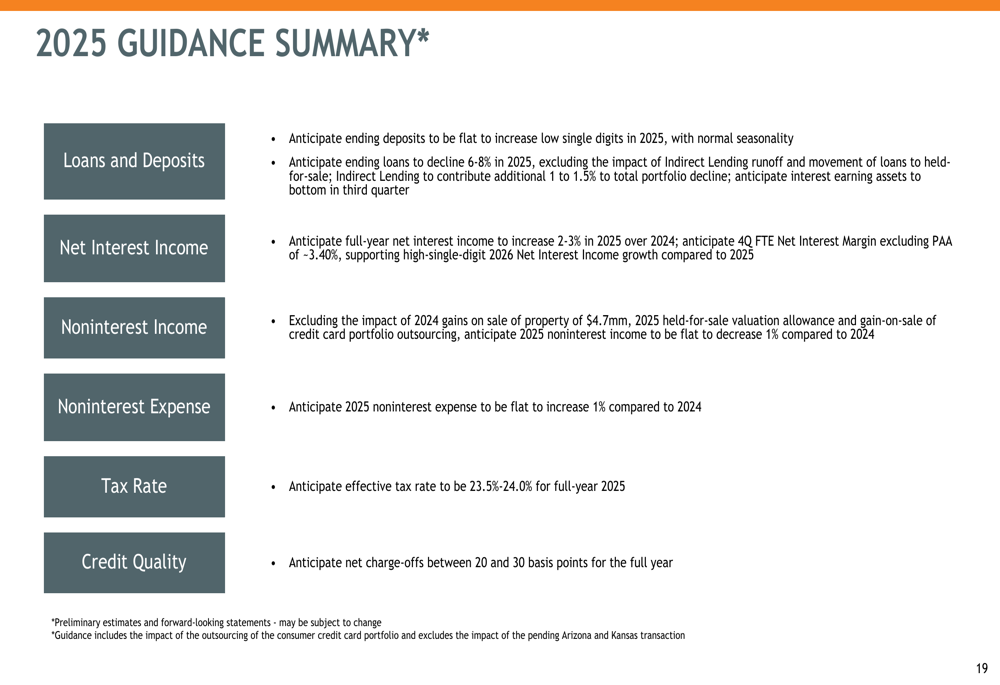 The bank anticipates net charge-offs between 20 and 30 basis points for the full year, reflecting continued strong credit quality. Management expects high single-digit growth in net interest income in 2026, with net interest margin projected to reach 3.4% by the fourth quarter of 2025.