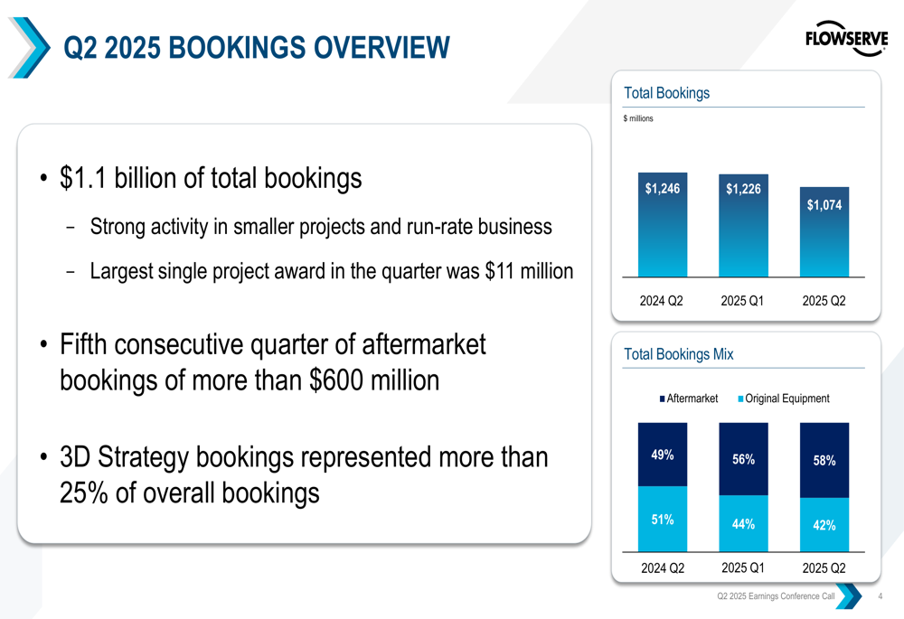 Flowserve highlighted its ongoing "3D Strategy" focused on diversification, decarbonization, and digitization. The company reported that bookings related to this strategy represented more than 25% of overall bookings in Q2 2025, indicating progress in its strategic transformation.