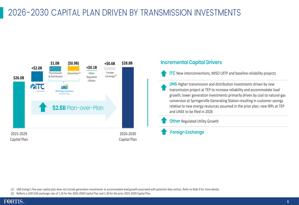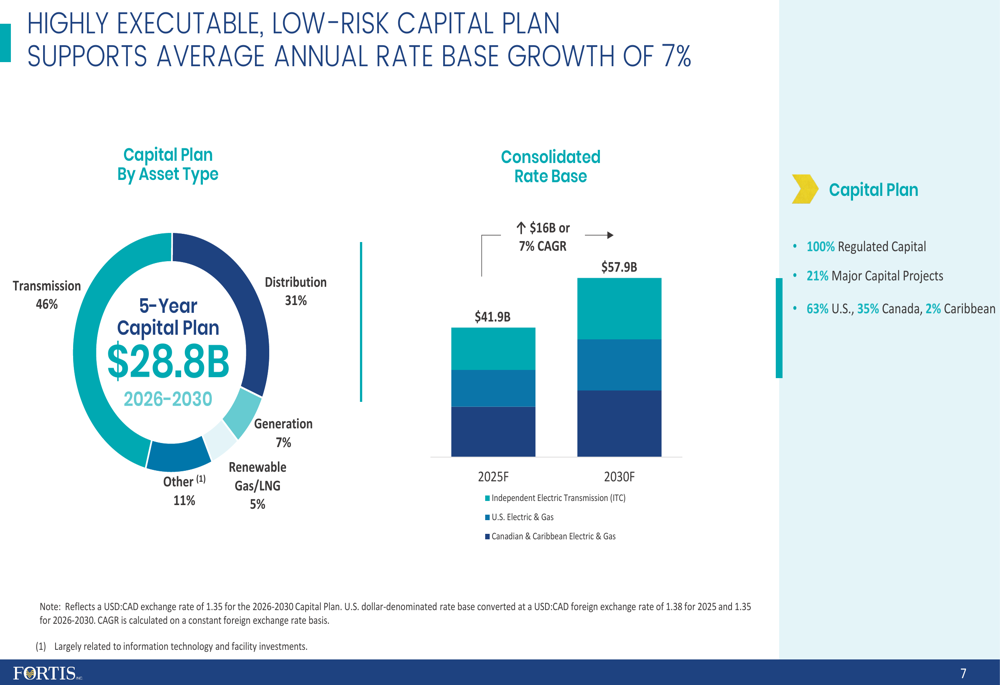 The centerpiece of Fortis' presentation was its new $28.8 billion five-year capital plan for 2026-2030, representing an increase of $2.8 billion over the previous plan. This record investment is expected to drive a 7% compound annual growth rate in rate base through 2030, which is 50 basis points higher than the prior plan's growth rate.