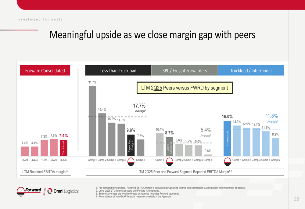 Forward Air emphasized its transformation into a global logistics provider following the integration with Omni Logistics. The combined entity now operates over 250 facilities across 21 countries, with approximately 12% of revenue generated outside the United States.