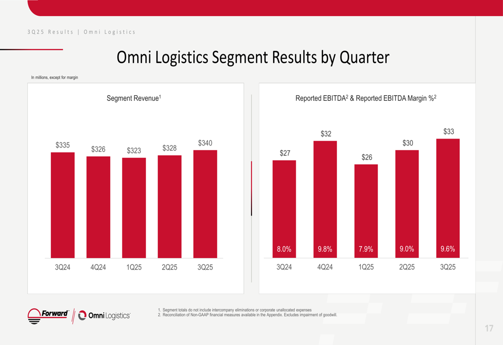 Forward Air operates through three primary segments: Expedited Freight, Omni Logistics, and Intermodal. Each segment showed distinct performance trends in Q3 2025.
