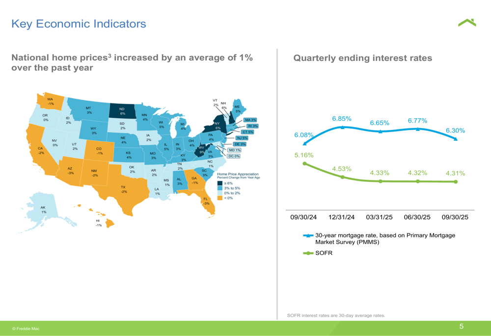 Freddie Mac (OTC:FMCC) released its third quarter 2025 financial results on October 30, revealing a mixed performance characterized by declining net income but steady growth in its mortgage portfolio. The government-sponsored enterprise reported net income of $2.8 billion, down 11% year-over-year, while its total mortgage portfolio reached $3.62 trillion, reflecting a 2% increase from the same period last year.