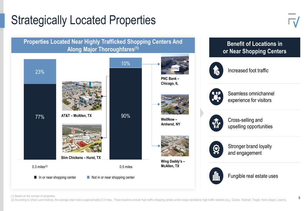 Additionally, 77% of FrontView’s properties are located in or near shopping centers, and 90% are situated along major thoroughfares, providing tenants with high visibility and customer convenience. This positioning is particularly attractive to tenants in essential and experiential retail segments that demand high-profile physical locations.