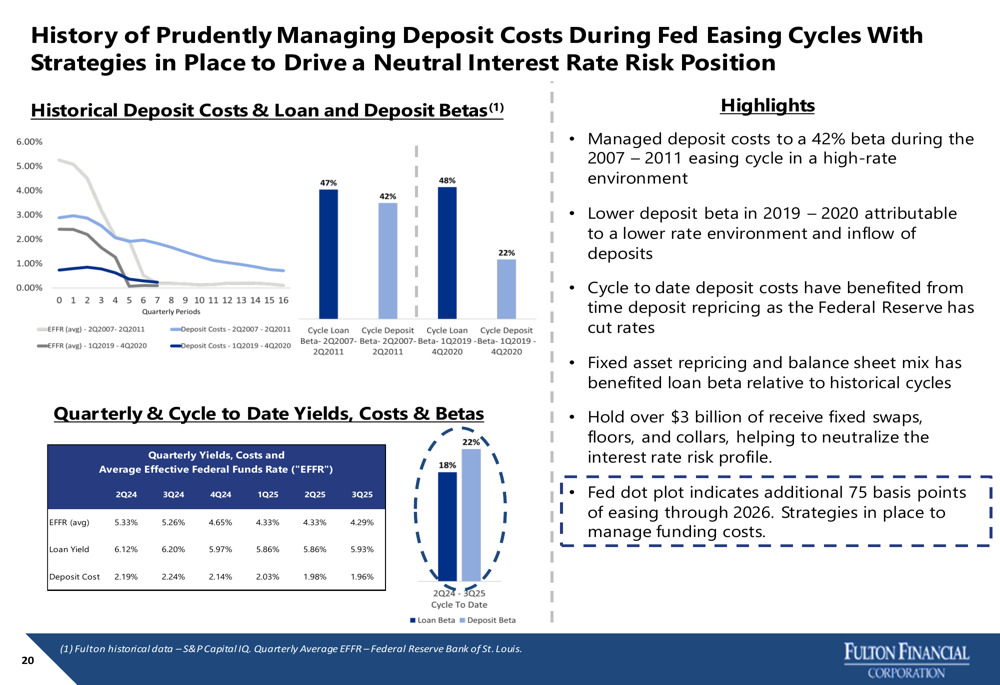 Fulton Financial updated its 2025 guidance to reflect recent Federal Reserve rate cuts, projecting net interest income between $1.025 billion and $1.035 billion. This guidance incorporates expected federal funds target rate cuts of 25 basis points in both October and December.
