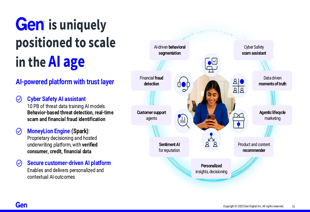 Gen Digital continues to focus on its mission of "Powering Digital Freedom" by creating innovative and easy-to-use technology solutions that help people grow, manage, and secure their digital and financial lives. With its expanded AI capabilities and integration of financial wellness services, the company appears well-positioned to address evolving consumer needs in an increasingly complex digital landscape.