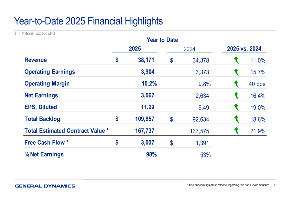 General Dynamics reported impressive financial results for the third quarter of 2025, with substantial growth across all key metrics compared to the same period in 2024.