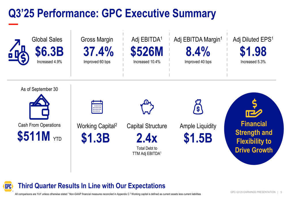 As shown in the following executive summary of GPC’s third quarter performance: