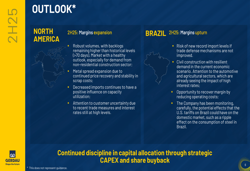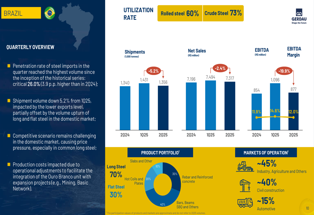 For Brazil, Gerdau anticipates a margins upturn despite the risk of new record import levels. The company cited resilient demand from civil construction and opportunities to recover margins through operating cost reductions. Management is also monitoring potential effects that U.S. tariffs on Brazil could have on the domestic market.