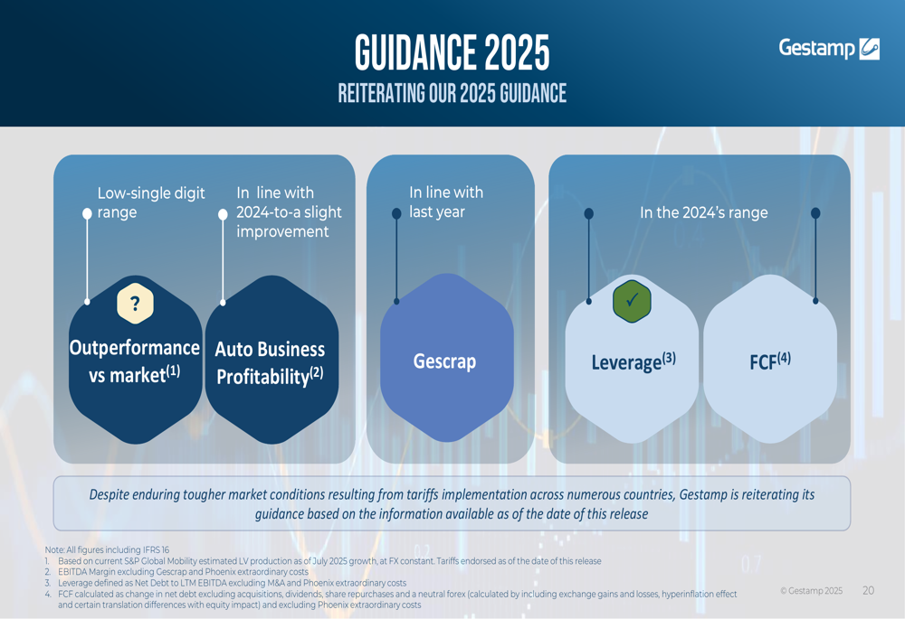 As shown in the guidance slide below, Gestamp aims to maintain its leverage and free cash flow in line with 2024 levels: