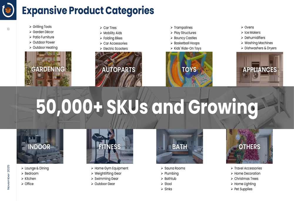 GigaCloud continues to diversify beyond its furniture roots, now offering over 50,000 SKUs across multiple categories: