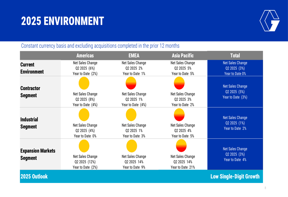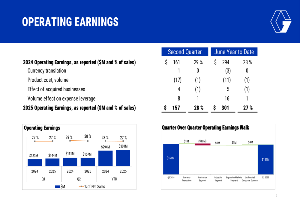 Graco Inc. (NYSE:GGG) reported its second-quarter 2025 financial results on July 24, showing a 3% year-over-year increase in sales primarily driven by acquisitions, while organic growth faced headwinds across several segments and regions.
