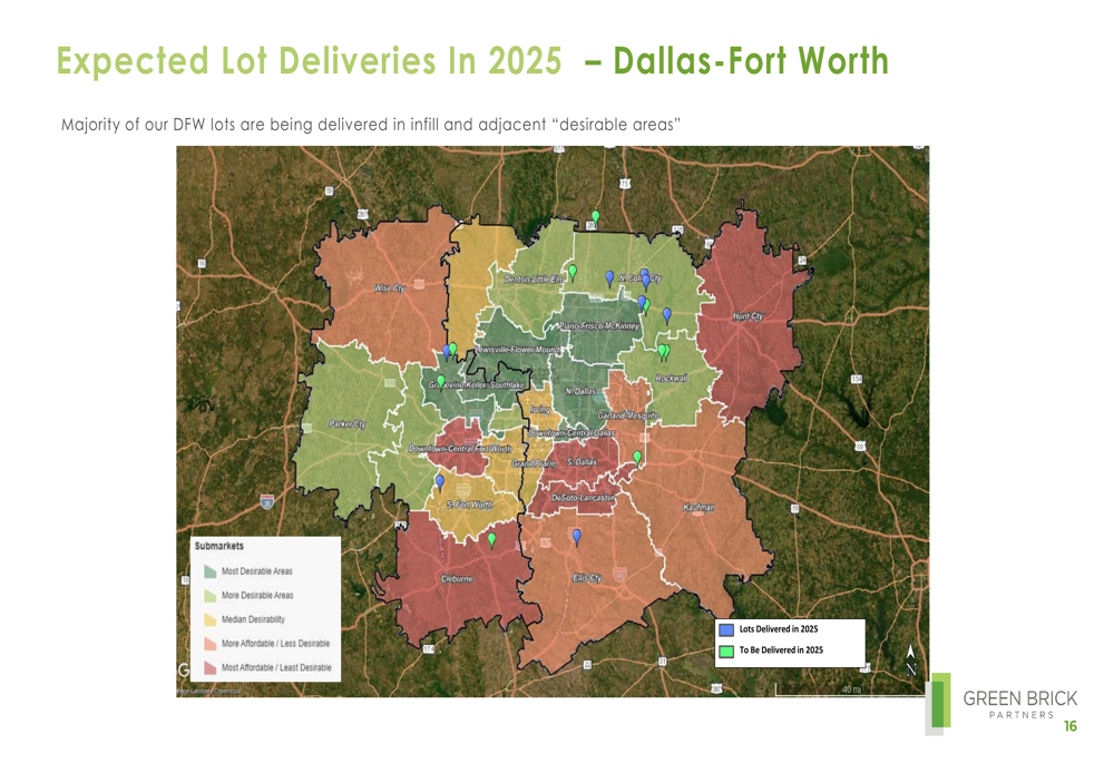 The company’s geographic strategy in Dallas-Fort Worth is illustrated in this map of expected lot deliveries: