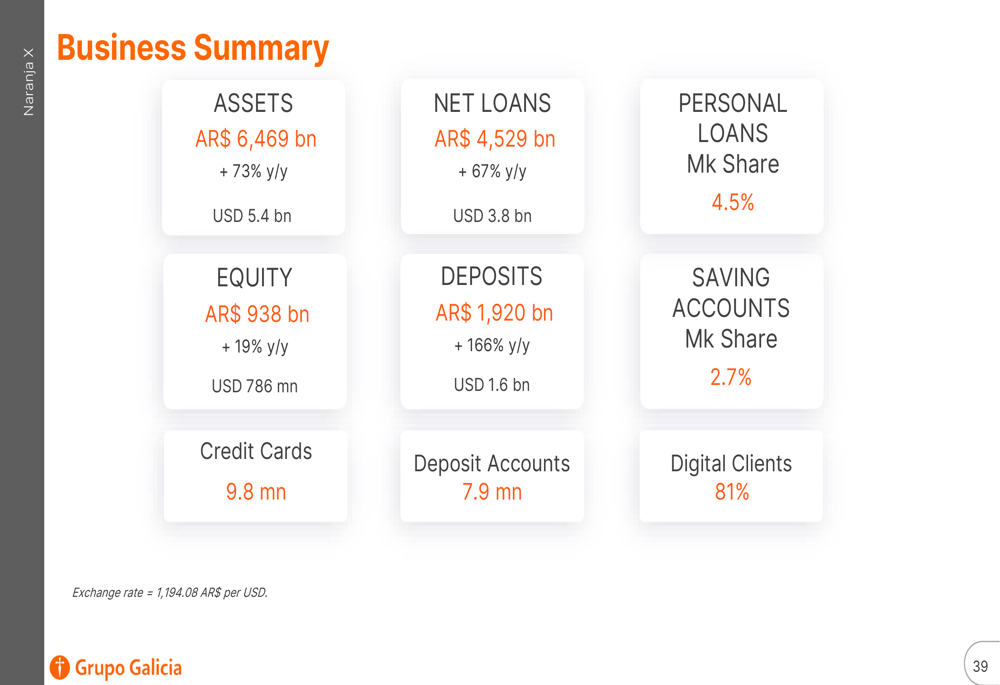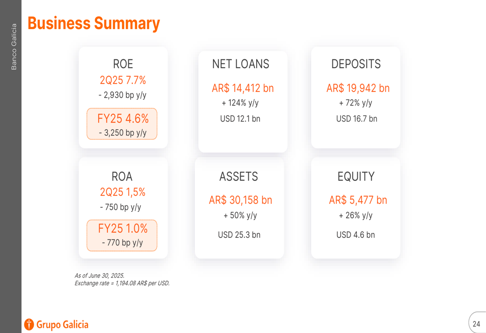 The following business summary provides a comprehensive overview of Banco Galicia’s key metrics: