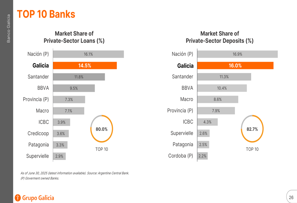 The following chart illustrates Galicia’s market position relative to its main competitors: