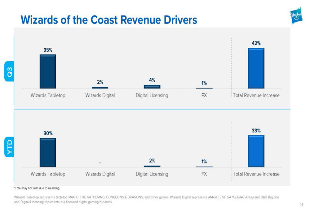 The following slide breaks down the revenue drivers for the Wizards segment, showing the substantial contribution from tabletop games: