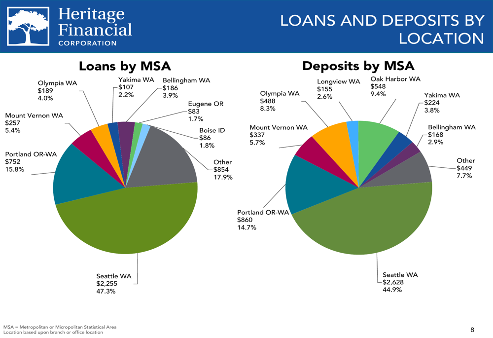 Heritage Financial’s loan portfolio remains well-diversified across multiple segments, with a significant portion in commercial real estate and commercial and industrial loans. The company’s loan distribution by metropolitan statistical area (MSA) shows a concentration in the Seattle market, which accounts for 47.3% of total loans, followed by Portland at 15.8%.