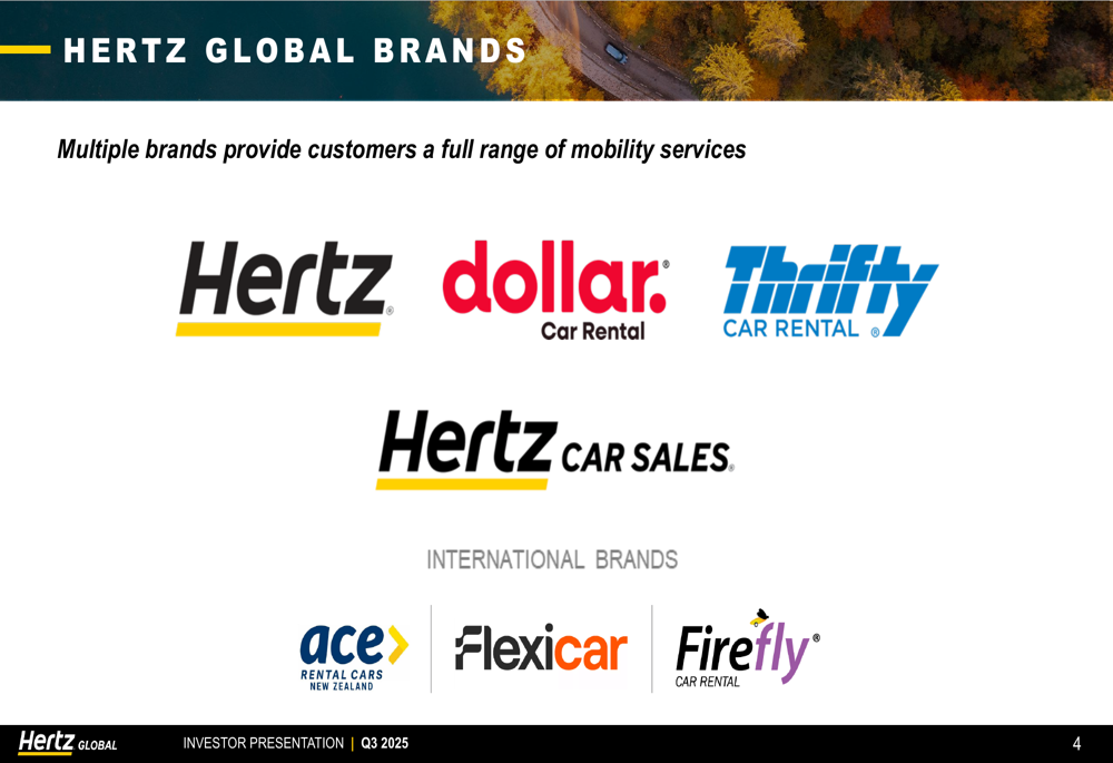 The company maintains a diverse brand portfolio beyond its flagship Hertz brand, including Dollar, Thrifty, and several international brands: