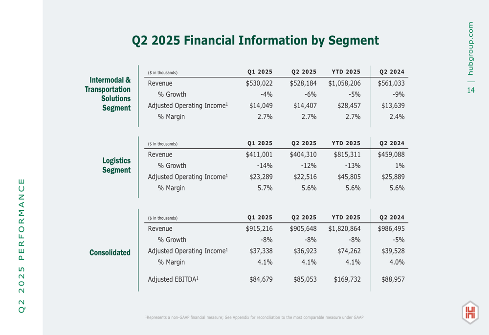 Hub Group’s detailed financial information by segment shows the relative stability of margins despite revenue pressures: