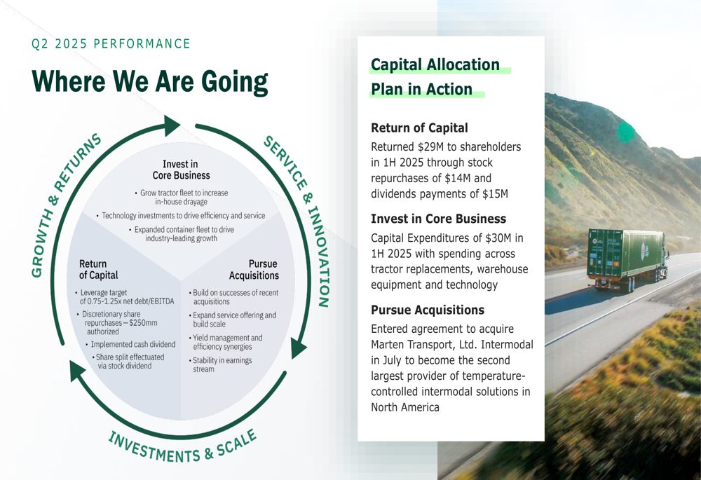 CEO Phil Yeager emphasized the company’s strategic direction during the earnings call, stating, "We are executing on this strategy as illustrated by the acquisition of Martin Transport’s refrigerated intermodal fleet." Meanwhile, CFO Kevin W. Beth highlighted the company’s resilience, noting that "Our performance through this freight recession reflects resilience and structurally higher performance."