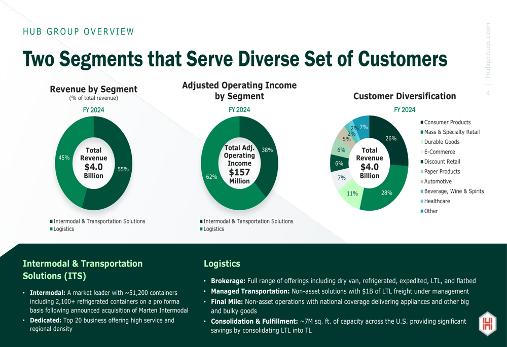The following chart illustrates Hub Group’s segment breakdown and customer diversification: