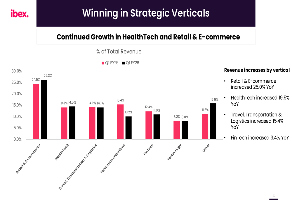 The following chart illustrates IBEX's performance across strategic verticals: