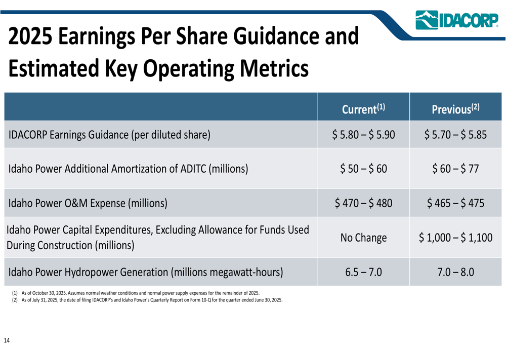 Based on strong year-to-date performance, IDACORP has raised its full-year 2025 earnings guidance to $5.80-$5.90 per diluted share, up from the previous range of $5.70-$5.85. However, the company has also increased its operations and maintenance expense guidance to $470-$480 million, up from $465-$475 million previously.
