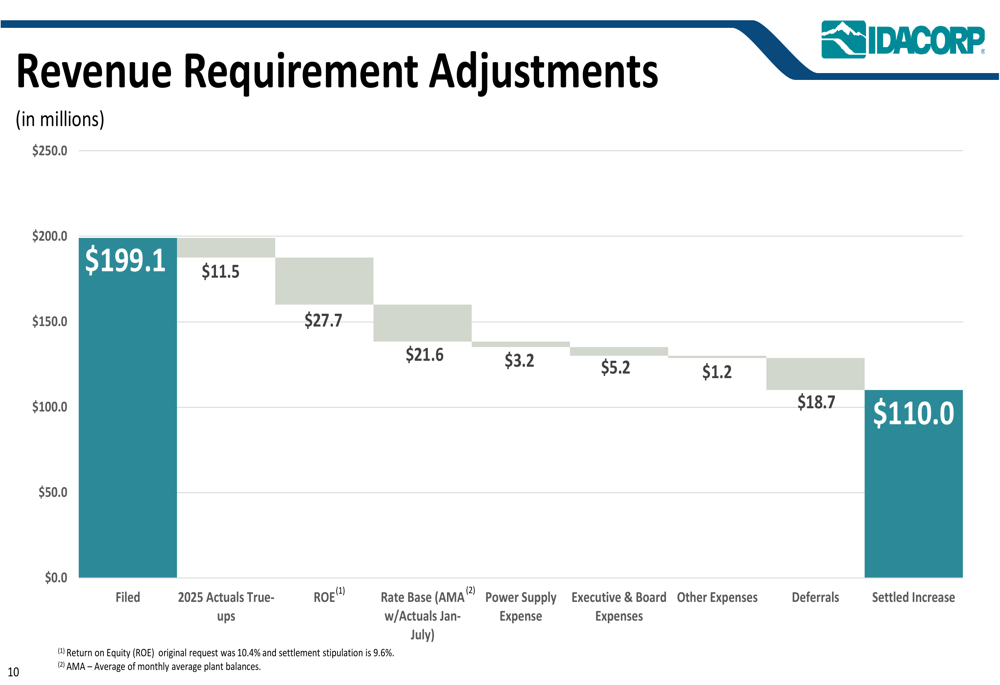 IDACORP recently reached a settlement in its Idaho General Rate Case, which is pending approval by the Idaho Public Utilities Commission. The settlement provides for a $110 million increase (7.48%) in annual Idaho-jurisdictional revenue, with rates expected to become effective January 1, 2026.