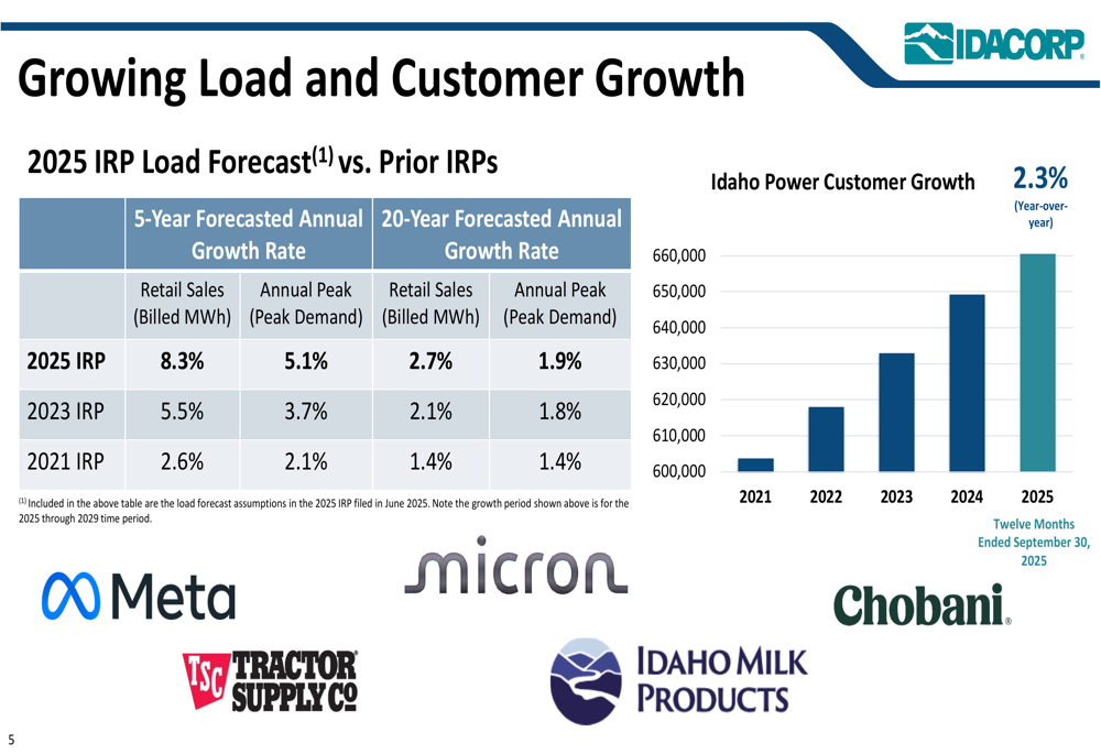 The company continues to benefit from robust customer growth in its service territory, which includes major industrial customers like Meta, Micron, and Chobani. This growth is driving significant infrastructure investments as IDACORP positions itself to meet increasing energy demands in the coming years.
