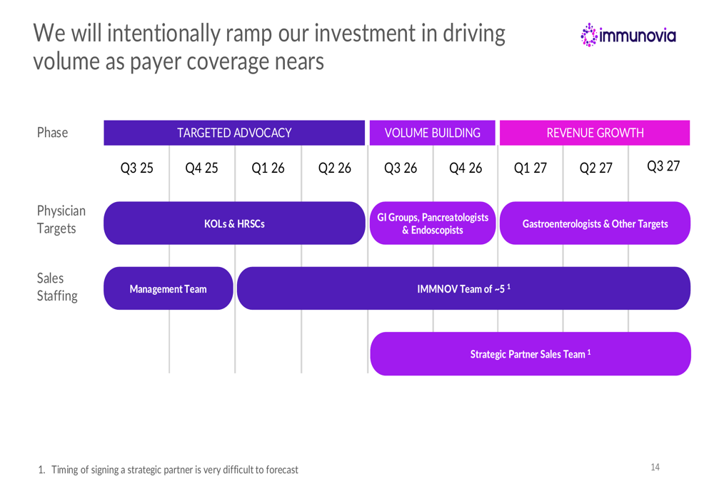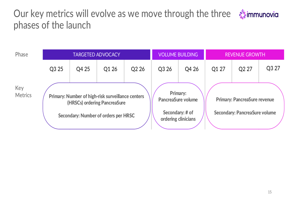 Immunovia outlined a three-phase commercialization approach spanning from Q3 2025 through 2027, gradually increasing investment as payer coverage expands: