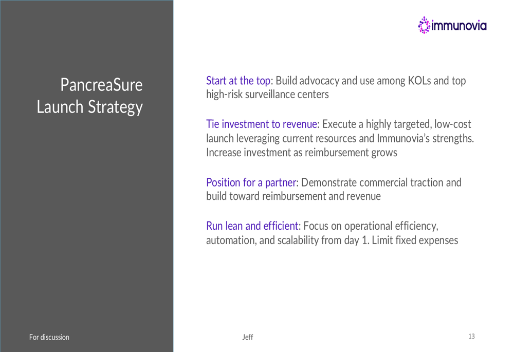 The centerpiece of Immunovia’s presentation was its PancreaSure test launch strategy, which focuses on a targeted, phased approach. The company plans to initially build advocacy among key opinion leaders (KOLs) and high-risk surveillance centers before expanding to broader markets.