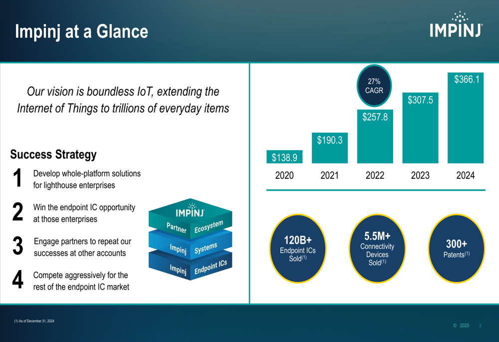 As shown in the following overview of Impinj’s business, the company has established a solid foundation for future growth: