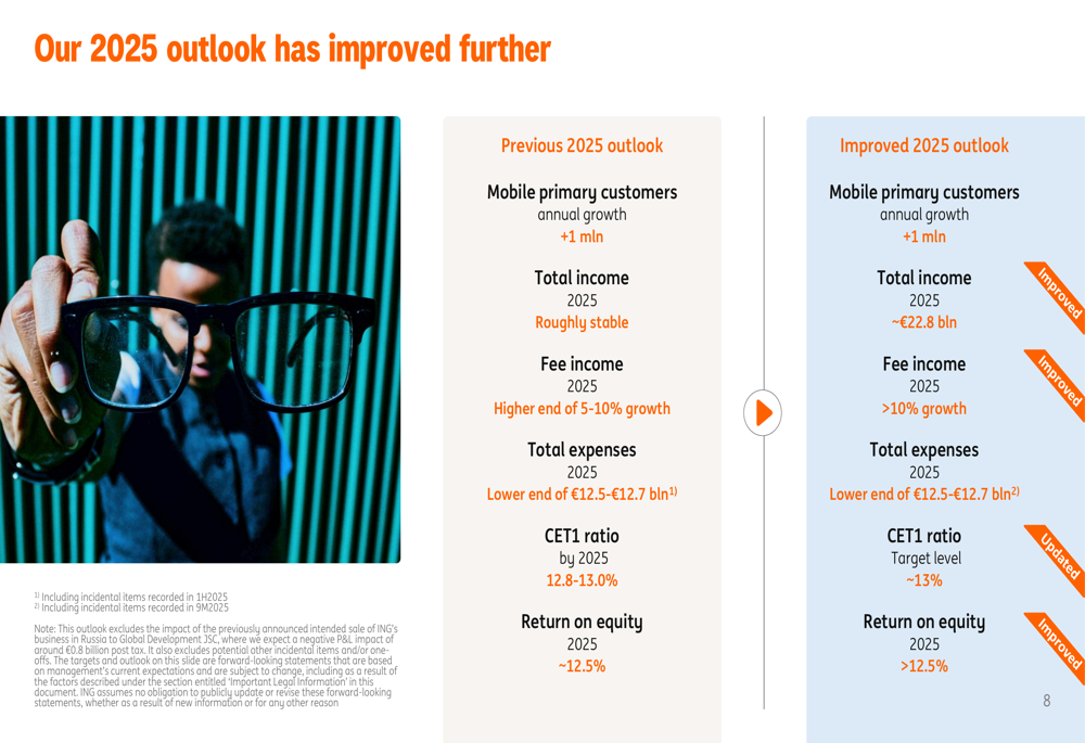 A significant highlight of the presentation was ING’s improved outlook for 2025, with several key metrics revised upward compared to previous guidance.