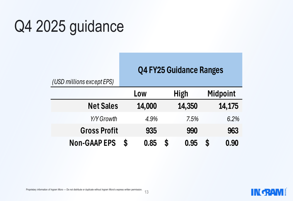 Looking ahead to Q4 2025, Ingram Micro provided guidance that suggests continued growth: