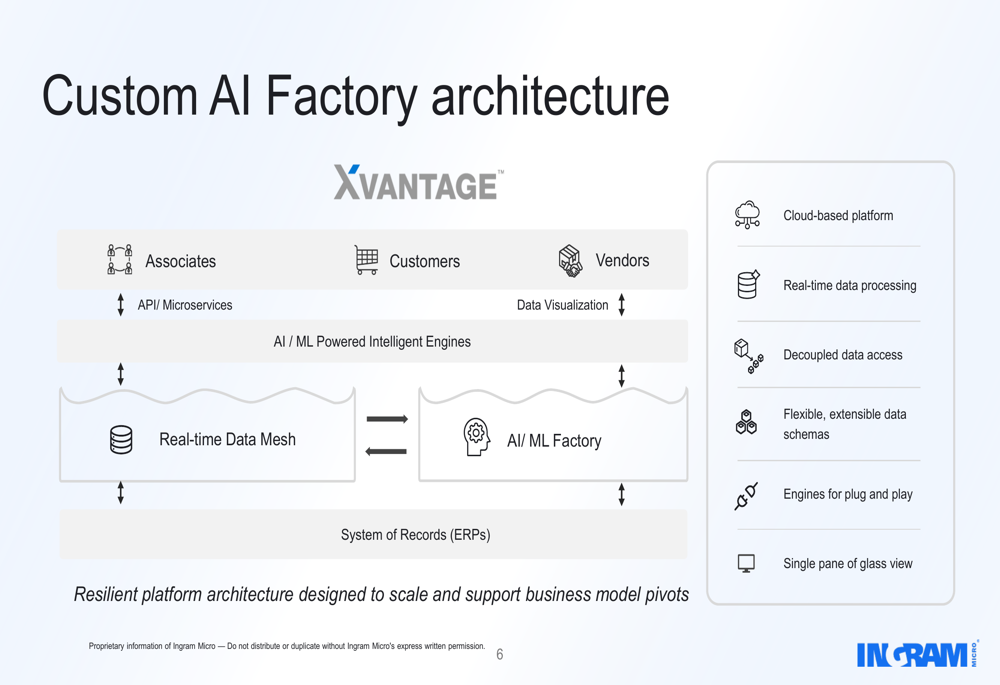 A significant portion of Ingram Micro's presentation focused on its artificial intelligence strategy, positioning the company to capitalize on emerging AI trends through its Xvantage platform. The company outlined its custom AI factory architecture and ecosystem approach: