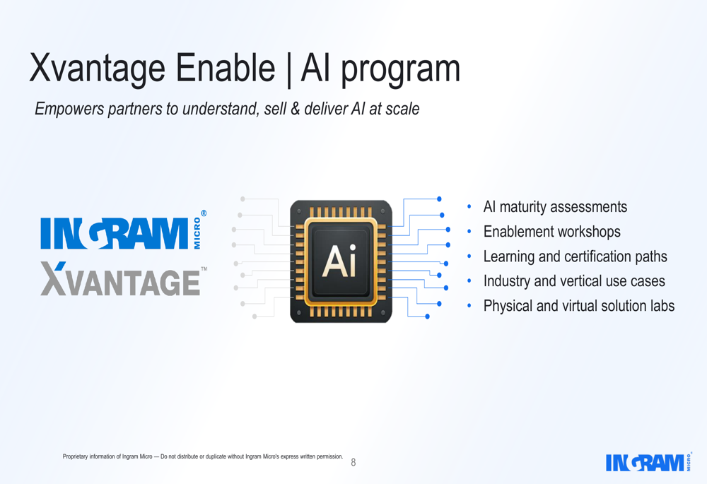 To support this ecosystem, Ingram Micro has launched the Xvantage Enable | AI program, designed to help partners understand, sell, and deliver AI solutions at scale: