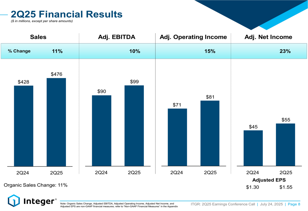 Integer’s CEO Joe Dziedzic noted during the earnings call that the company "delivered strong growth in the first and second quarter with sales up 9% and EPS up 17% in the first half of 2025."