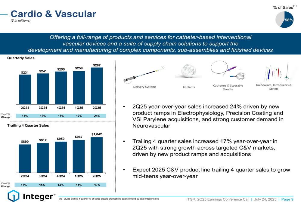 Management attributed this robust growth to new product ramps in Electrophysiology, contributions from the Precision Coating and VSi Parylene acquisitions, and strong customer demand in the Neurovascular market. The company expects the Cardio & Vascular product line to maintain mid-teens growth for the full year 2025.