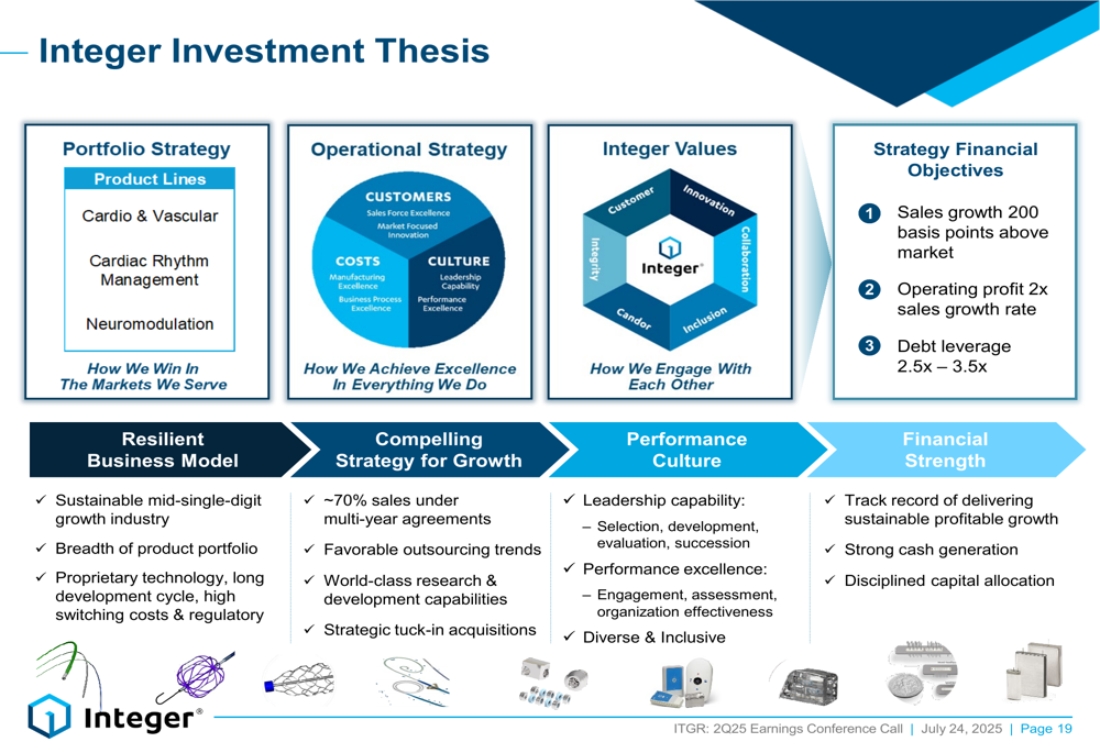 The following illustration outlines Integer’s strategic positioning and investment thesis: