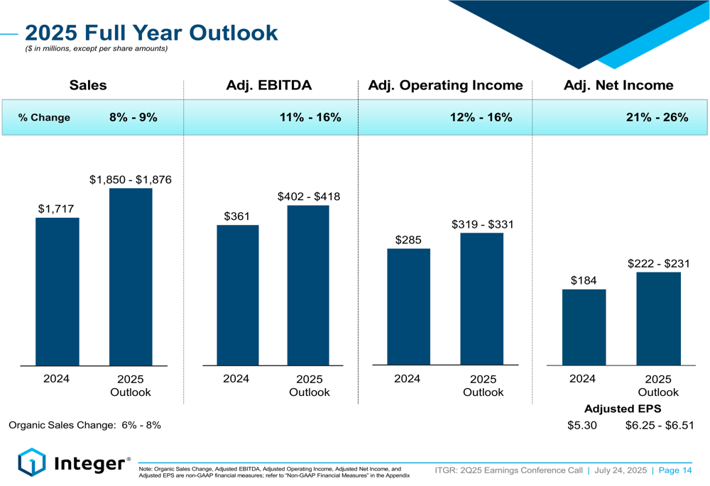 The following chart details Integer’s full-year 2025 outlook: