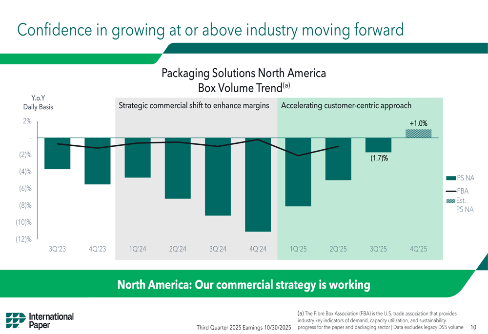 The company noted that its box volume trends in North America have shown improvement, with strategic customer wins resulting in year-over-year growth in September: