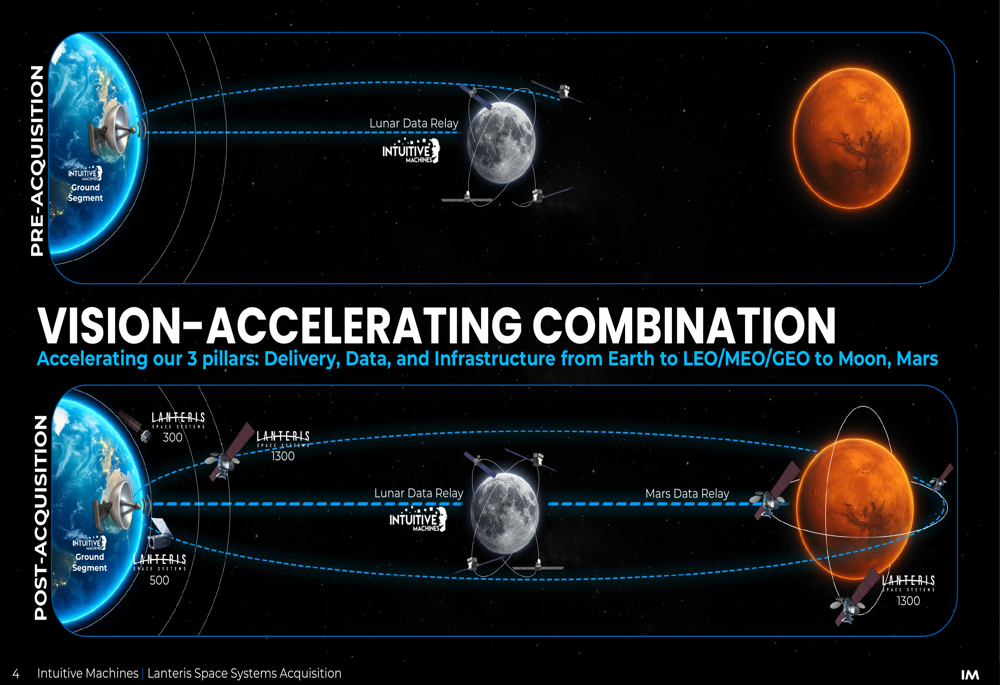 The acquisition accelerates Intuitive Machines' vision across its three strategic pillars: delivery, data, and infrastructure, as illustrated in this vision slide: